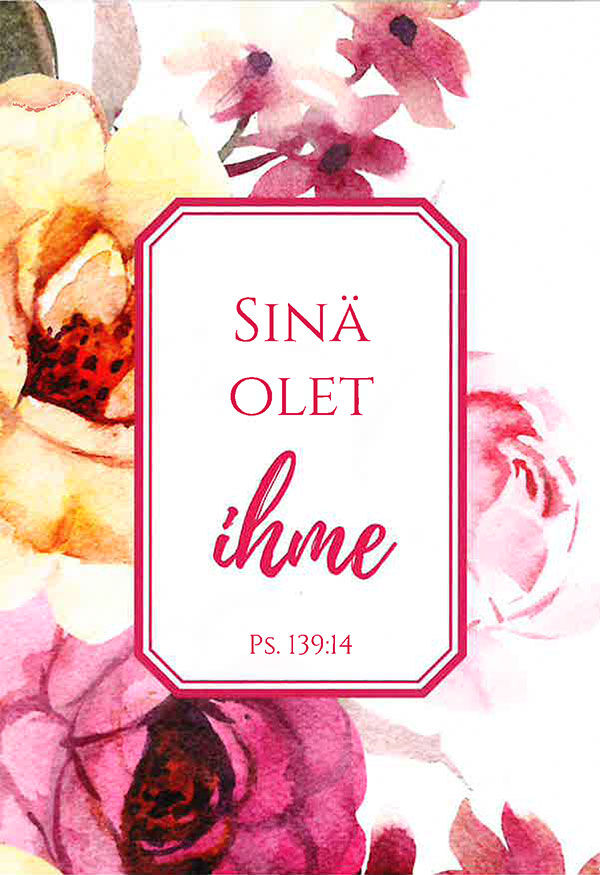 Kaunis kukkakortti itselle tai lahjaksi. Teksti: ”Sinä olet ihme.” Ps. 139:14
